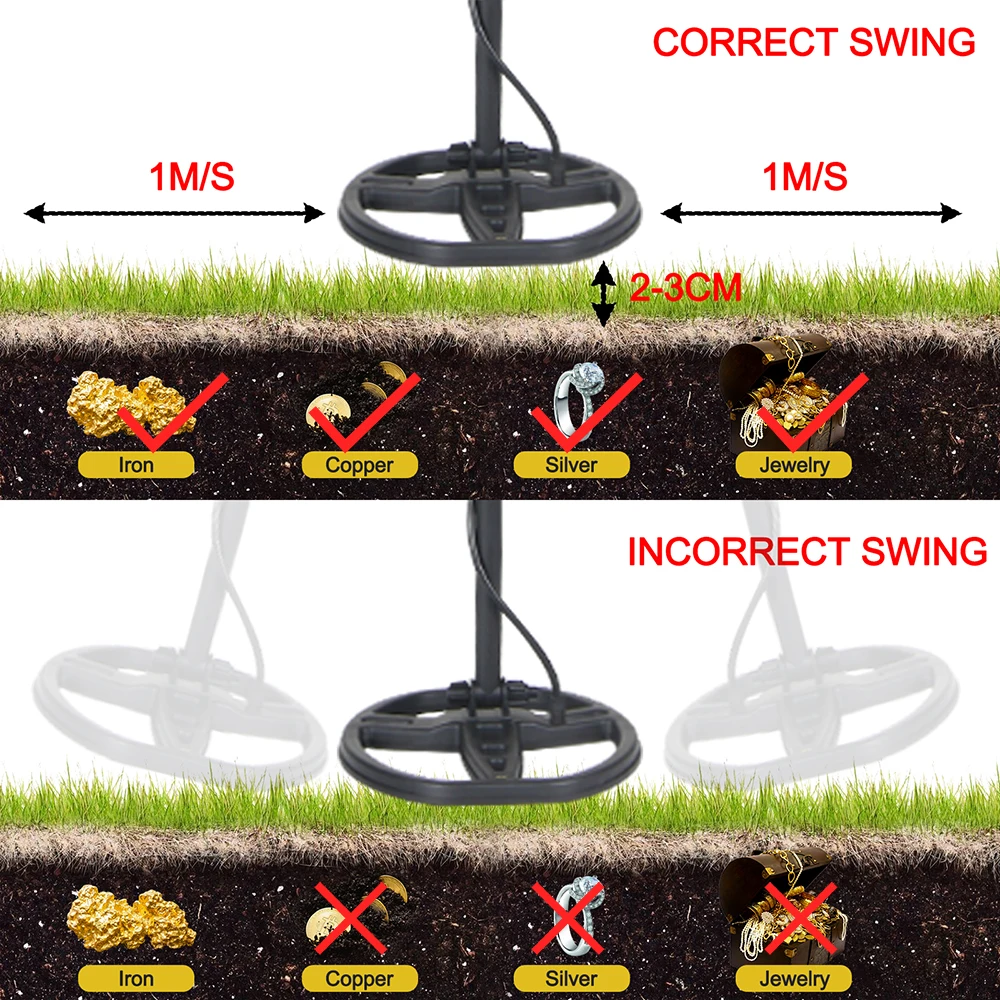 Use this detector to detect mineral deposits that are not deeply buried, including primary gold, gold, and gold